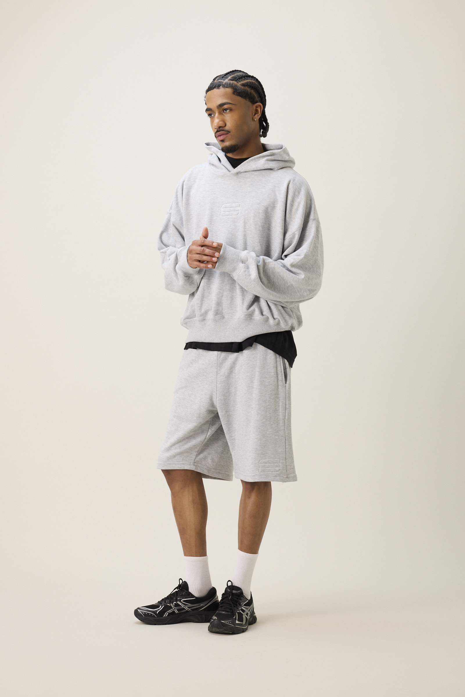 Buzo boxy fit oversize con capucha. con detalles bordados. La confección de esta prenda crea una apariencia angular y geométrica, siendo una expresión fiel a las ultima tendencia de moda. Su silueta cuadrada y relajada brinda un aspecto contemporáneo y casual. El corte boxy fit transmite una imagen despreocupada y relajada, ideal para aquellos que buscan un estilo casual y urbano sin sacrificar la moda. Composición: 100 algodón rústico esmerilado. Color: gris melange.