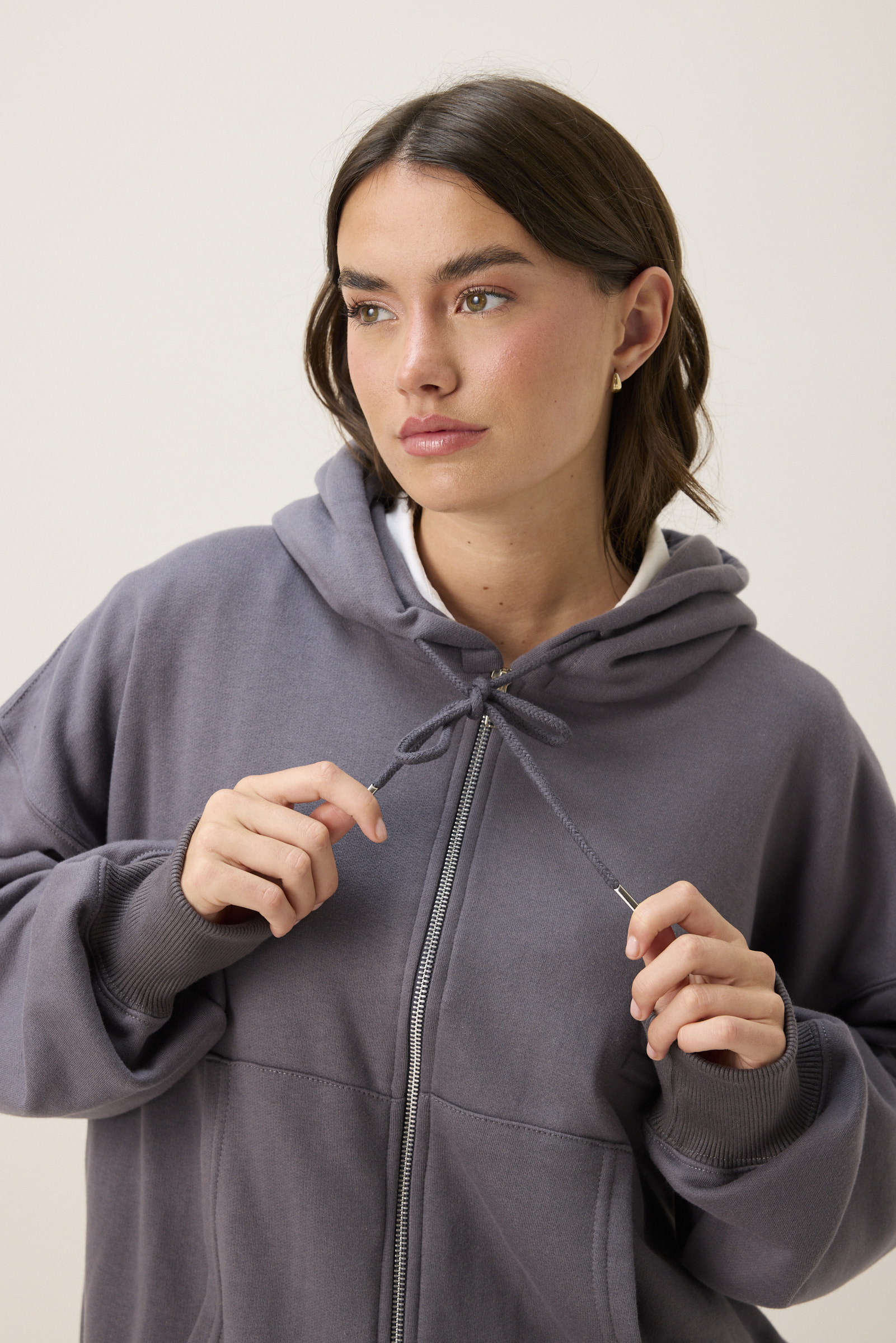Campera boxy fit, con detalles en estilo gofrado. Cuenta con cierre reforzado y metálico. Esta prenda presenta una construcción geométrica que genera una apariencia angular y equilibrada. La estructura oversize aporta comodidad sin perder definición, transmitiendo una imagen despreocupada y urbana. Su material de confección, brinda liviandad y abrigo de manera complementaria, siendo una pieza fundamental para los momentos del día, en temporada de verano, que se requiere de un abrigo ligero. Composición: 100% algodón rústico esmerilado. Color: gris topo.