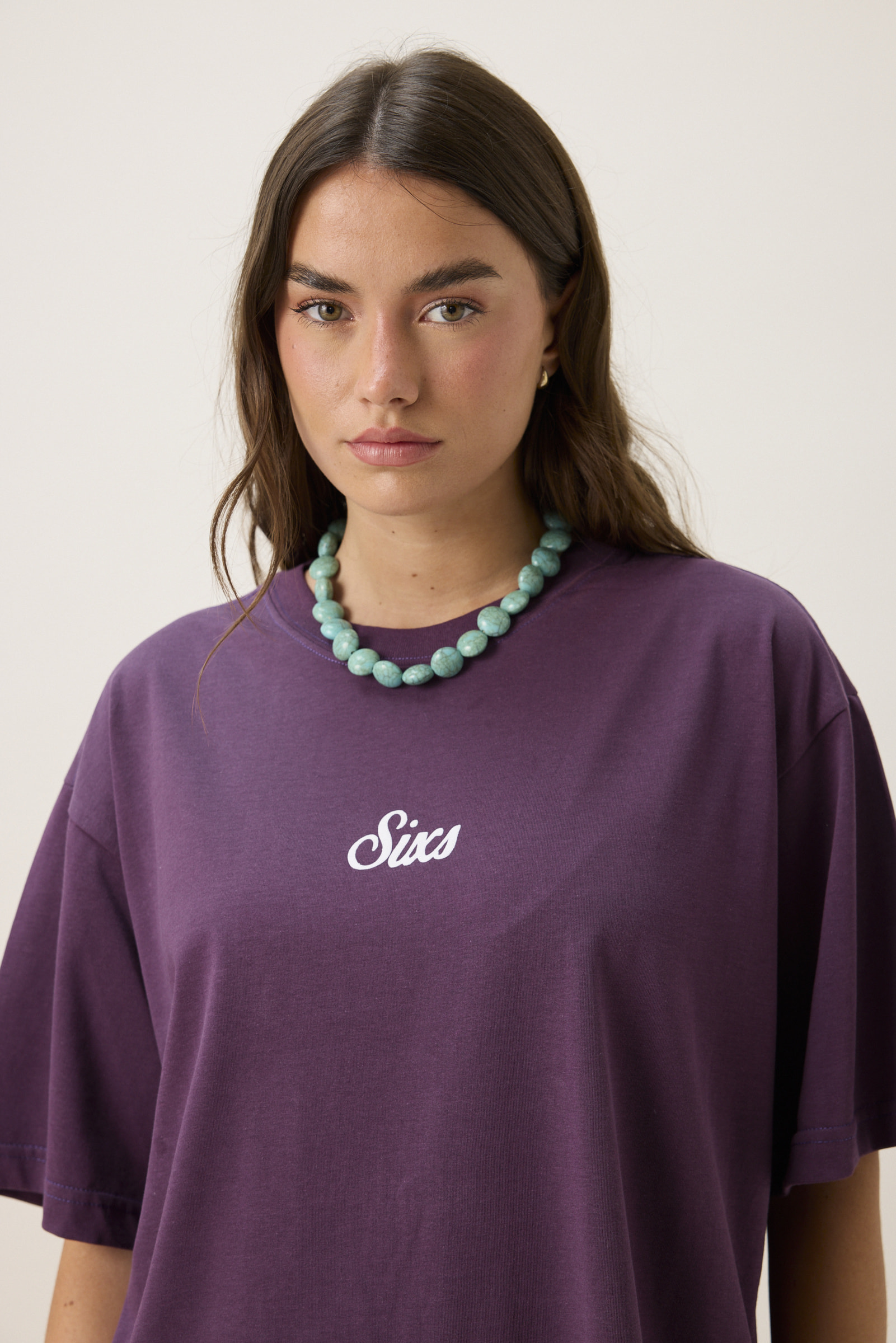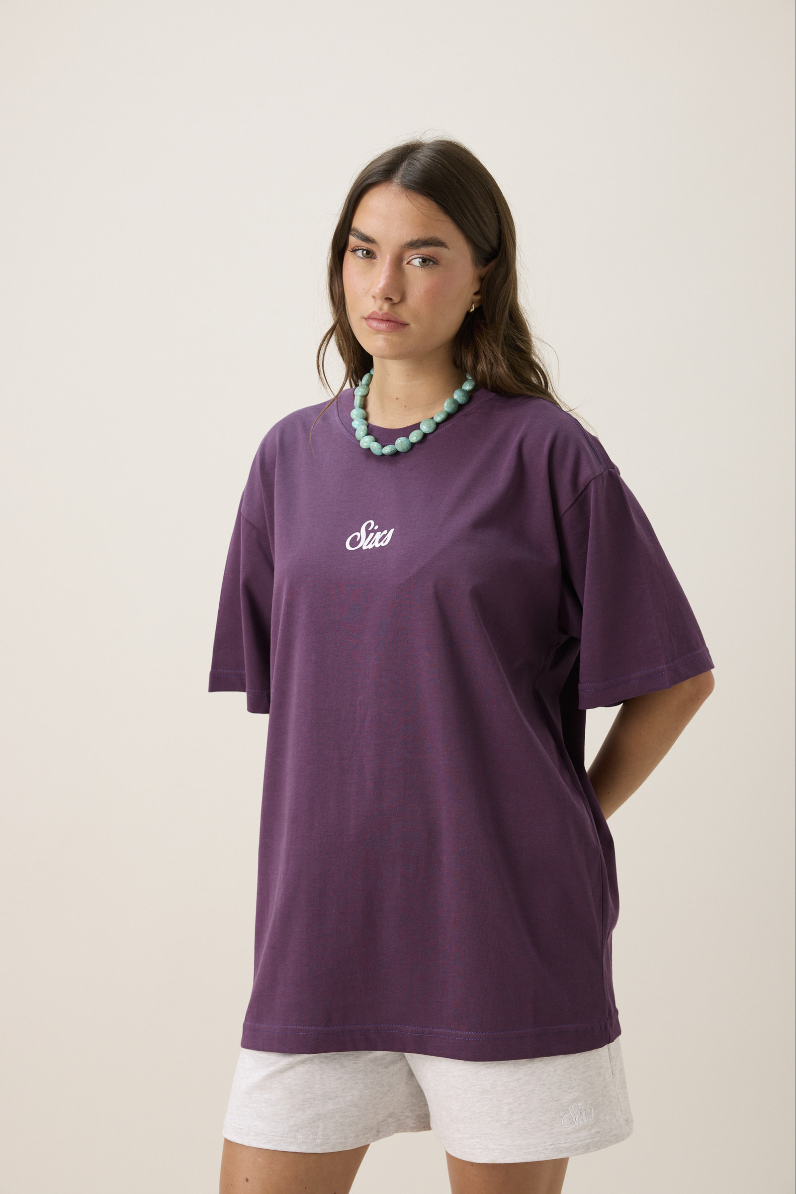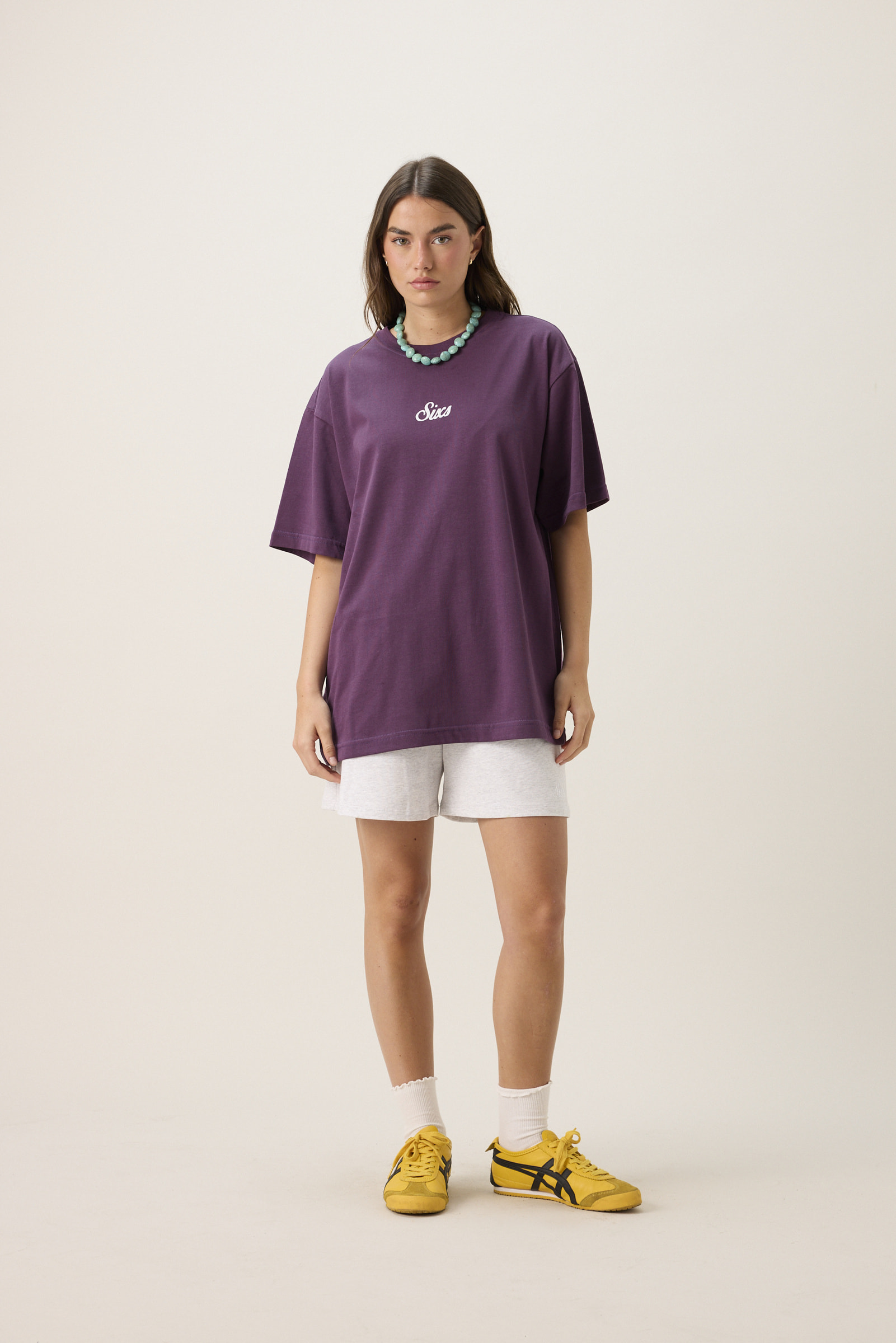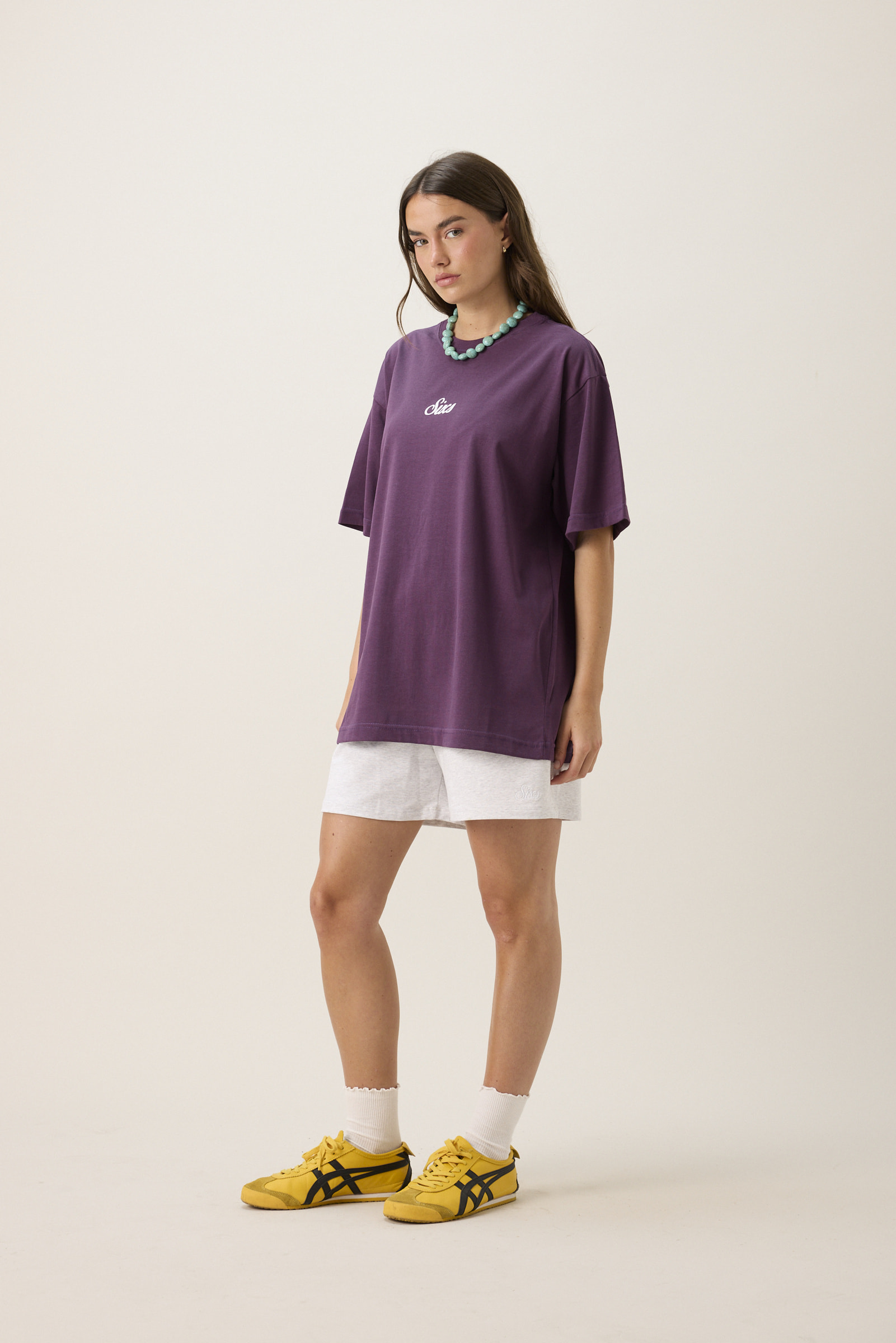 Remera de corte clásico de color violeta, con estampa en flock. Confeccionada en un tejido suave y ligero, ofrece una comodidad excepcional para el uso diario. Su diseño atemporal se adapta fácilmente a cualquier look, ya sea casual o más elaborado. La caída recta favorece todos los tipos de cuerpo, proporcionando un ajuste cómodo y sin restricciones. Ideal para combinar con jeans, faldas o shorts, esta prenda se convertirá en un básico indispensable en tu guardarropa. Composición: 100% algodón.